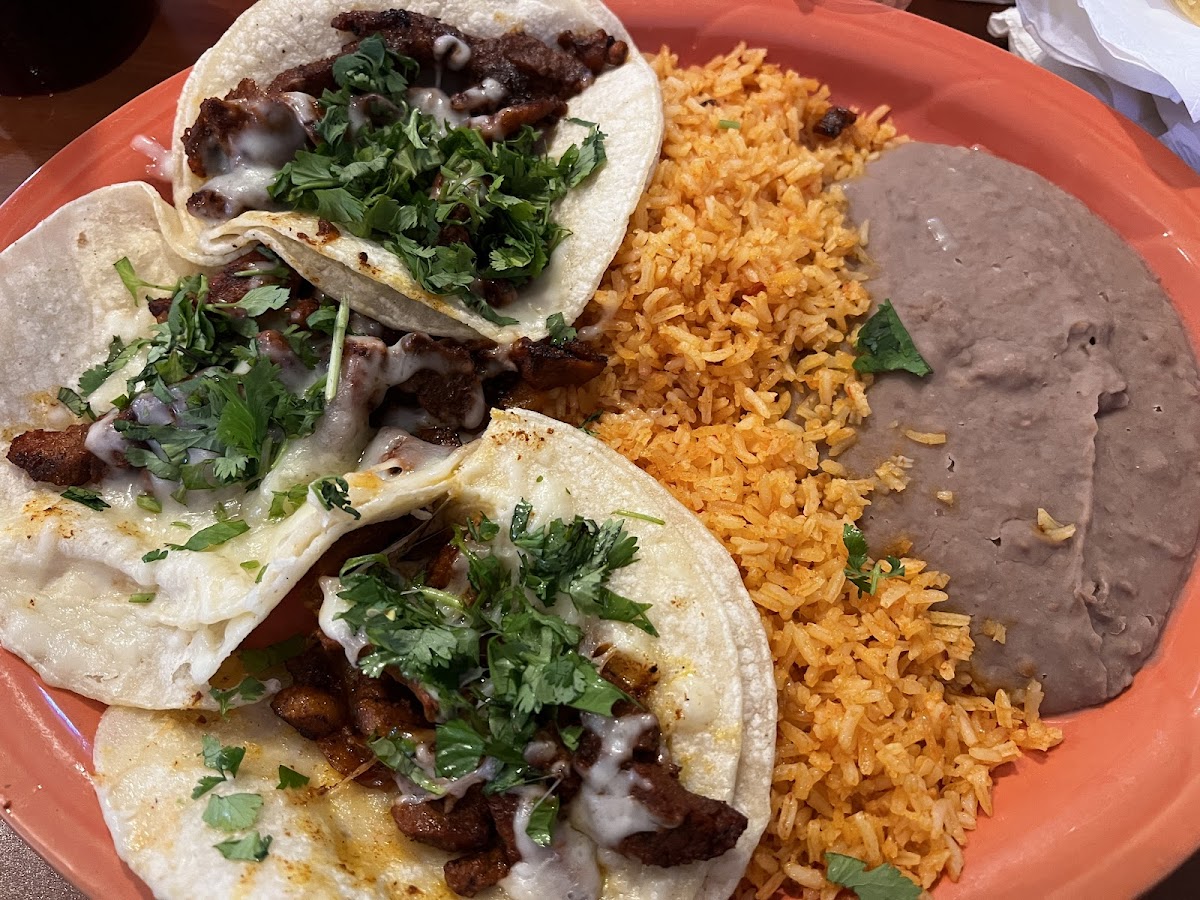 For the taco lovers, the selection of both crispy and soft tacos won't disappoint. Choose from ground beef or shredded chicken to fill your plate, or opt for the Tacos Al Carbon, served with your choice of beef, chicken, or pork fajita, complemented by guacamole and pico de gallo, priced at $12.50. And don’t forget to save room for dessert! The Sopapillas Skillet Apple Pie, seared to perfection and topped with vanilla ice cream, is bound to leave you with a sweet ending to your meal; a must-try for just $9.00.