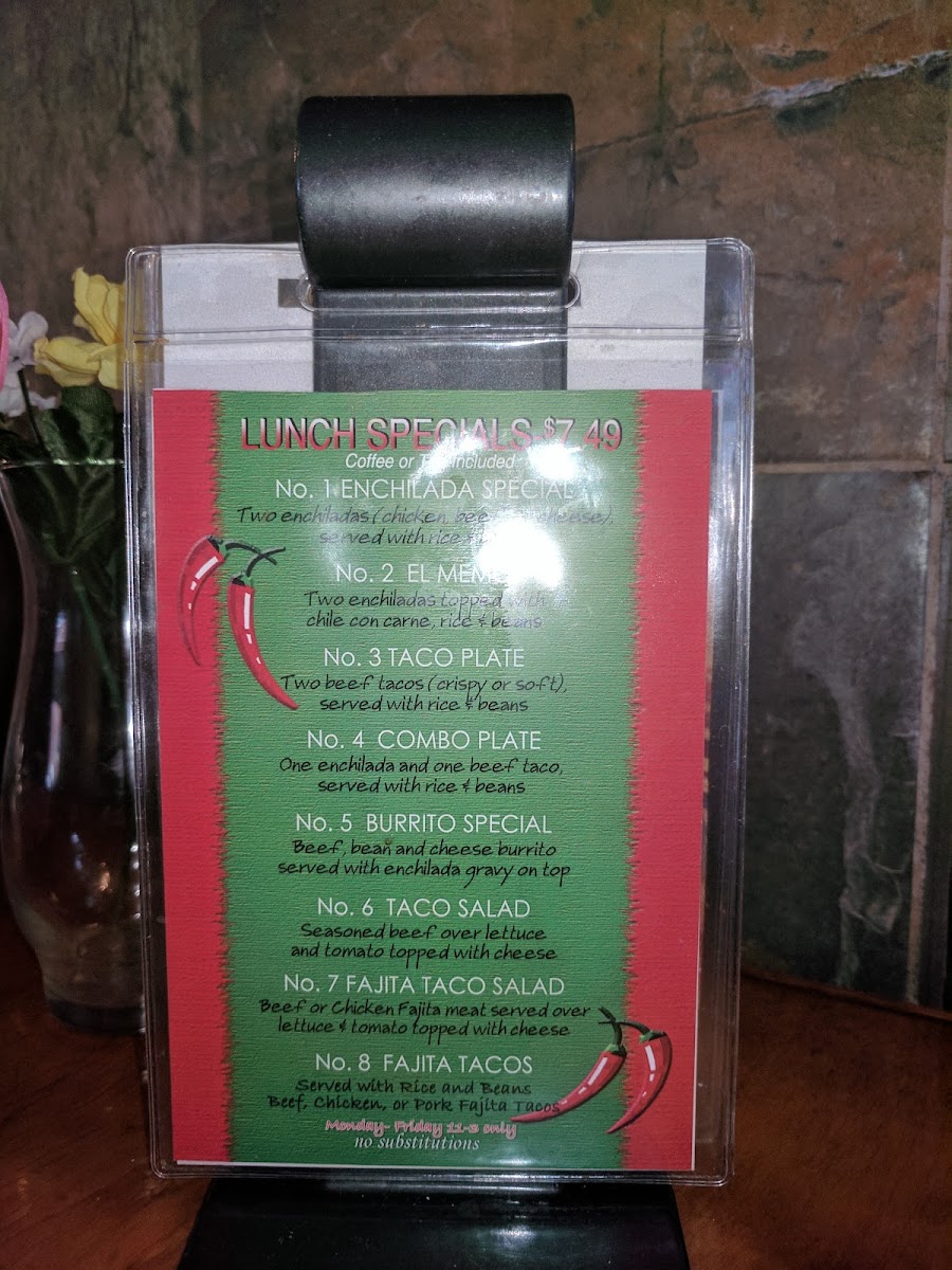 2 enchiladas, any style and 1 taco, any style. Served with rice and refried or charro beans.